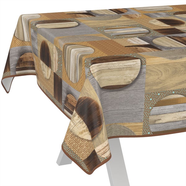 Tischdecke Vintage Holz Patchwork Braun 100x140cm mit Band-Kante Wachstuch abwaschbar
