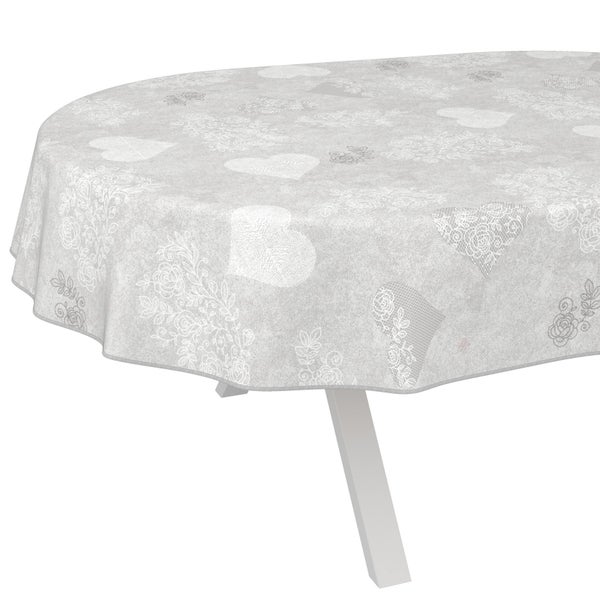Tischdecke Zeitlos Herz Liebe Grau Oval 220x140cm mit Band-Kante Wachstuch abwaschbar