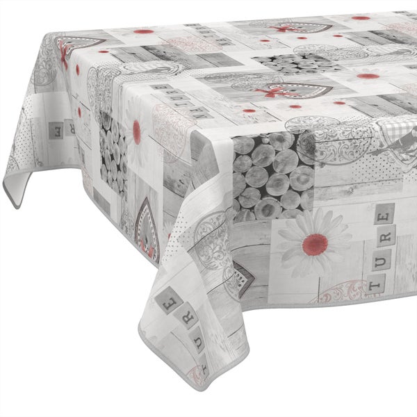 Tischdecke Zeitlos Holz Liebe Grau 120x140cm mit Band-Kante Wachstuch abwaschbar