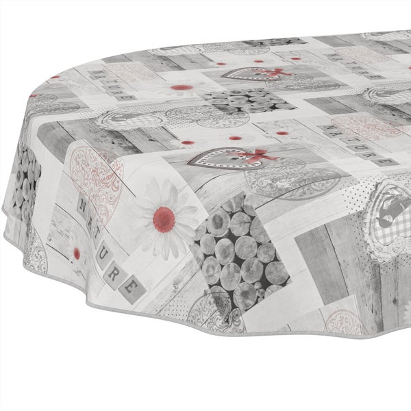 Tischdecke Zeitlos Holz Liebe Grau Oval 220x140cm mit Band-Kante Wachstuch abwaschbar