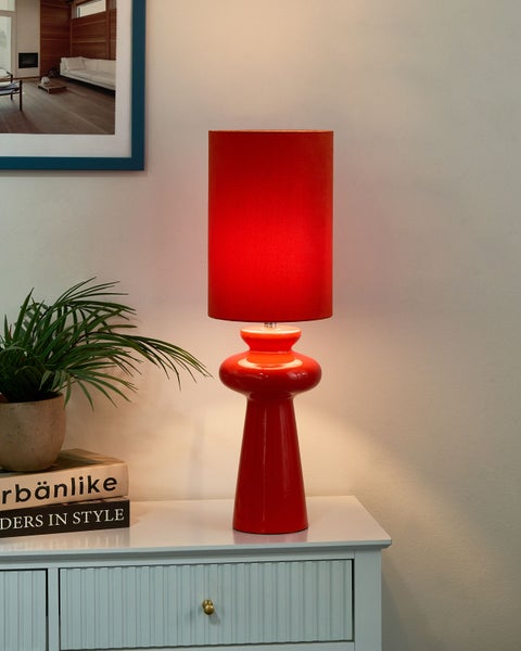Moderne Lampe mit Schirm aus Kunstwildleder. Diese rote Tischlampe ist ein echter Hingucker. Sie besteht aus langlebiger Keramik und künstlichem Wildleder und ist nicht nur wegen ihrer leuchtenden Farbe, sondern auch wegen ihrer einzigartigen, unregelmäßigen Form ein echter Hingucker. Da die Lampe aus hochwertigen Materialien hergestellt wurde, benötigt sie nur wenig Pflege und hält viele Jahre. Das Accessoire erzeugt ein sanftes, stimmungsvolles Licht, das sich perfekt in den Alltag einfügt. Details: Typ Tischleuchten. Stil: Retro. Farbe: Rot. Material: Stoff. Material: Kunstwildleder. Zusätzliches Material: Keramik. Material Lampenfuss: Keramik. Material Lampenschirm: Kunstwildleder. Zusammenstellung: 100% Polyester. Fassung: Max. 40 W. Finish: Glänzend. Schutzklasse: IP 20. Anzahl der Glühbirnen: 1. Spannung 220-240 V (50 Hz). Abmessungen: Fuß: 12x12x34. Kabellänge: 148 cm. Tiefe: 19 cm. Breite: 19 cm. Höhe: 62 cm. Gewicht: 2 kg. .Sie kaufen: 1 x Tischleuchte, Nicht im Lieferumfang enthalten: Leuchtmittel. Produktvorteile: Ausgestattet mit einem Ein/Aus-Schalter, Sorgt für eine gleichmäßige Beleuchtung des Raumes, Wunderbar geeignet für Schlaf- und Wohnbereich, Dekorativ und zugleich funktional, Hochwertiges Material. Montage: Benötigt keine Montage. Zusatzinformationen: Diese Leuchte ist geeignet für Leuchtmittel der Energieklassen A bis G auf einer Skala von A (sehr effizient) bis G (weniger effizient). Geeignet für: LED Leuchtmittel, Eco-Halogen Leuchtmittel, Energiesparleuchtmittel. Die Stromkabel dürfen nur von einem qualifizierten Elektriker angepasst werden. Pflegeanleitung: Kunstwildleder: 1.Flecken können mit einem Polsterreiniger, einem angefeuchteten Schwamm oder milden Reinigungsmitteln entfernt werden. 2.Oberflächen nur mit geeignetem Aufsatz vorsichtig absaugen. Keramik: 1.Bitte ausschließlich milde Reinigungsmittel und weiche Tücher verwenden. Feuchte Stellen sofort trocken reiben.