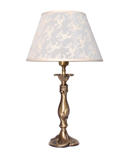 Tischlampe Stoff Messing Ø 30 cm 34 cm hoch in Bronze Weiß E27 Jugendstil Nachttischlampe