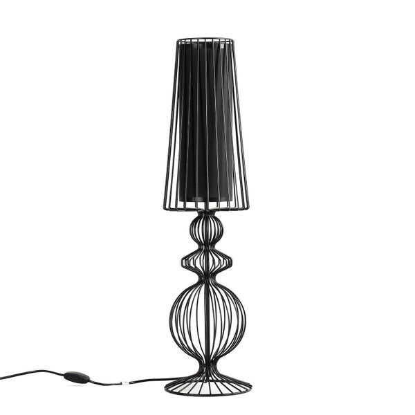Tischlampe Stoff Metall x 79,5 cm hoch Schwarz Modern Käfig Schirm E27