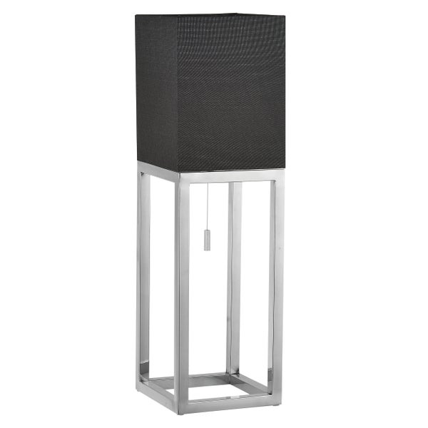 Tischleuchte ALFA, moderne Tischlampe aus Metall und Textil in Chrom/Dunkelgrau mit E27-Fassung, 65 cm hoch, schicke Lampe für Diele, Wohnzimmer und Büro