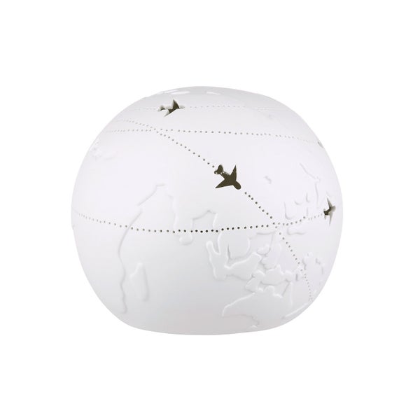 Einmal im Leben die ganze Welt bereisen, ein Traum vieler Menschen! Mit der Porzellan Kugellampe Weltenbummler von GILDE bringen wir Ihnen dieses Feeling ein wenig näher!. Das Motivdesign der Lampe, mit der Weltkarte und den ausgestanzten Flugzeugen und der Fluglinie strahlen ein besonderes Licht in Ihrer Umgebung. Genießen Sie diese beleuchtete Romantik in Ihrem Zuhause. Lieferwesen ohne Leuchtmittel.