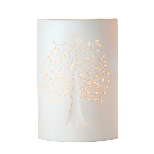 Die richtige Beleuchtung schafft Atmosphäre und ein schönes Ambiente. Diese Porzellanlampe aus dem Hause GILDE Handwerk im Motivdesign vereint beides und gibt jeder Wohn-Welt das gewisse Extra. Der ausgestanzte von innen beleuchtete Lebensbaum strahlt diesen als Schatten in seine Umgebung aus. Genießen Sie diese beleuchtete Romantik in Ihrem Interieur. Bei dieser Lampe werden keine Leuchtmittel mitgeliefert!