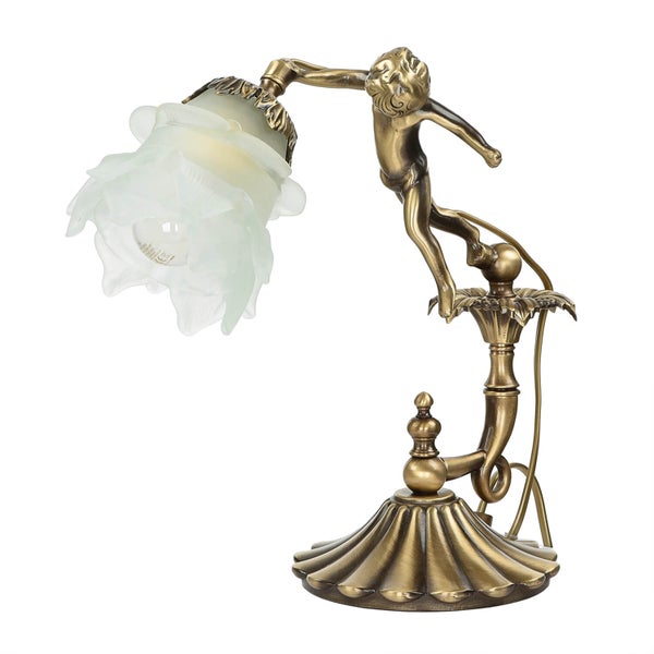 Tischleuchte Glas Echt-Messing 33 cm hoch in Bronze Antik Weiß E27 Jugendstil Tischlampe