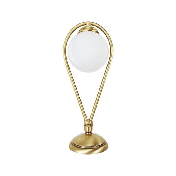 Tischleuchte Glas Messing massiv 38 cm hoch in Bronze hell Weiß E14 Kugelschirm Jugendstil Tischlampe