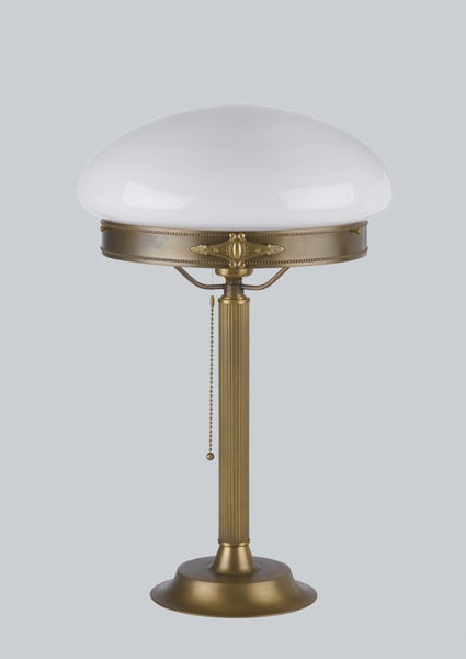 Tischleuchte mit Zugschalter 48 cm Messing Glas E27 Weiß Jugendstil Tischlampe