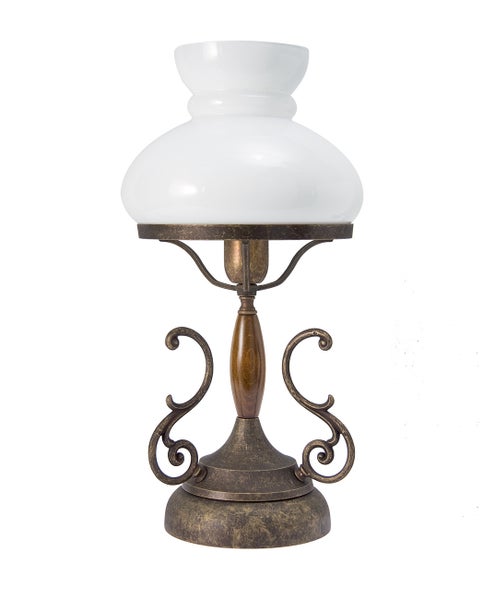 Tischleuchte Rustikal 46 cm hoch Echt-Messing Glas in Bronze Antik Weiß E27 Beistelllampe Tischlampe