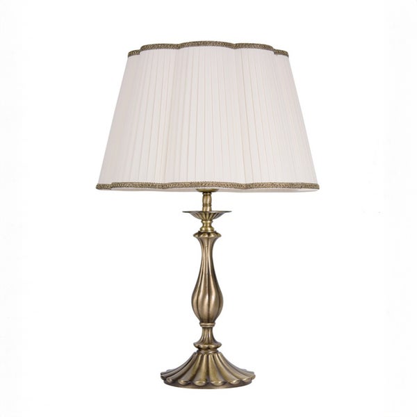 Tischleuchte Stoff Echt-Messing 57 cm hoch in Bronze hell Weiß E27 Jugendstil Nachttischlampe Tischlampe