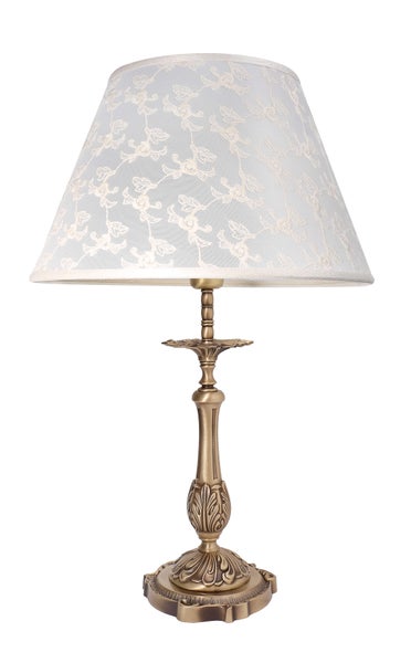 Tischleuchte Stoff Messing massiv 41 cm E27 in Bronze hell Weiß Jugendstil Tischlampe