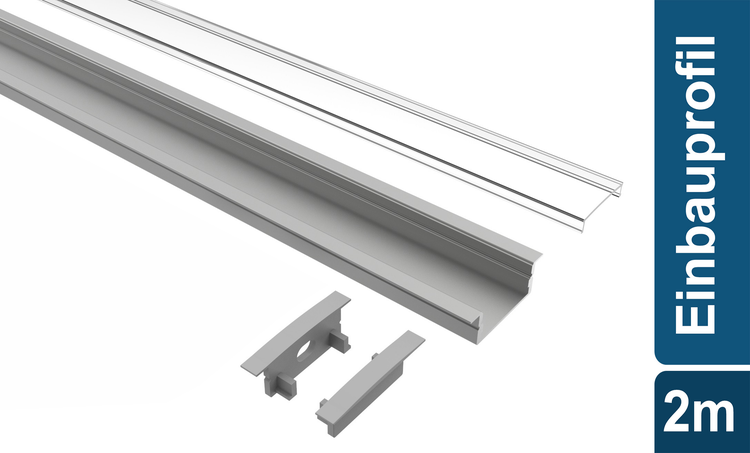 TIVENDIS Led Alu Profil 2 m EB Komplett Set für Strip / Streifen bis 20 mm breit | Abdeckung transparent klar, Endkappen | Einbau Fußleisten Flachprofil eloxiert