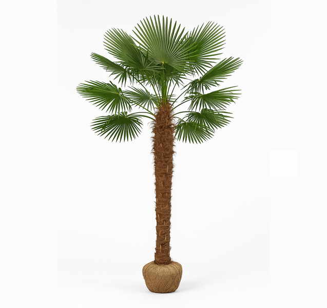 Wuchsform: Aufrechter, unverzweigter Stamm – schlank und gerade, mit typischer brauner Faserummantelung