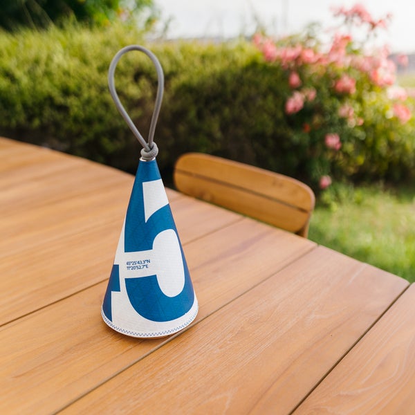 Hochwertige Materialien: Holzsockel und nautischer Stoffkegel