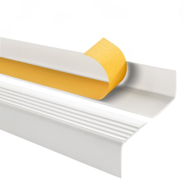 Treppenkantenprofil Selbstklebend 50x42 mm - Treppenprofil PVC für Treppenstufen, Treppenkantenschutz mit Rillen - 150 cm, Weiß