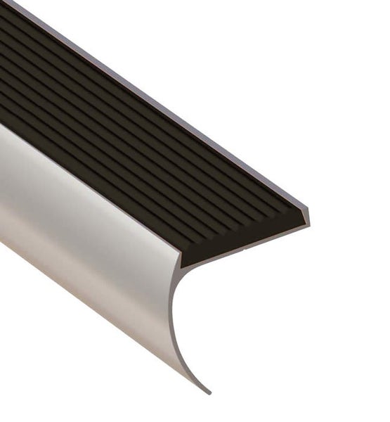 Ein Aluminium-Treppenprofil mit den Maßen 44 x 45 x 1350 mm und einer abgerundeten Ecke von 90 Grad. In der Farbe Silber. Diese Treppenprofile werden mit Schrauben oder doppelseitigem Klebeband an der Treppenkante befestigt. Sollte die Länge nicht passen, können Sie das Treppenprofil mit einer Metallsäge zuschneiden. Eigenschaften