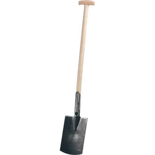 mit DIN-Dülle, doppelt genietet, Eschenstiel, ölgehärtetes, formstabiles Blatt, handgerecht gebogener T-Stiel, 95cm, angeschliffenes Blatt für leichtes Einstechen, 290 x 180 mm