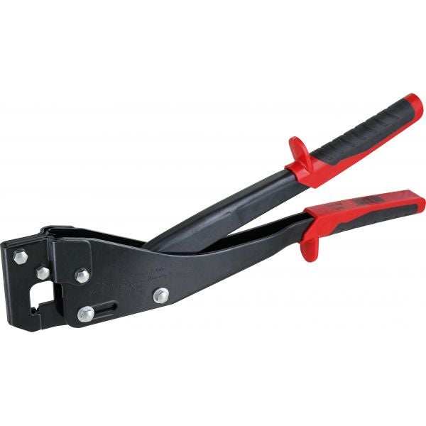 verbindet Metallprofile in einem Arbeitsgang, auch auf engem Raum einsatzbereit, leicht im Gebrauch, bequeme Kunststoffgriffe, maximale Materialstärke: 1,2 mm, 350mm