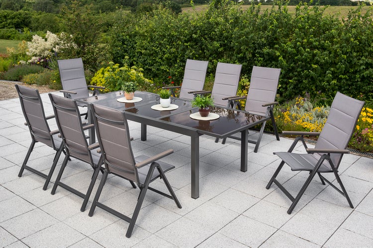 Trivero Gartenmöbelset 9tlg., Klappsessel, Ausziehtisch 140 (200) x 90 cm