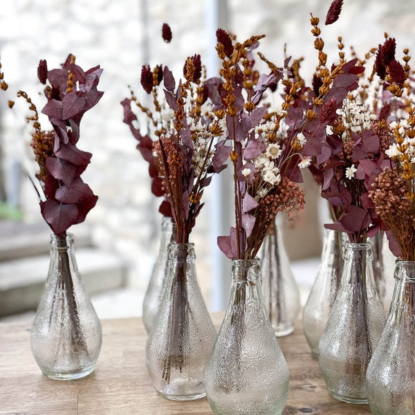 - Trockenblumen: Lavendel, Broom Bloom, Glixia, Eukalyptus, Phalaris