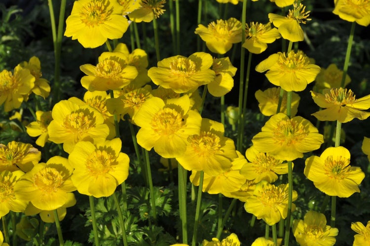 Trollius pumilus, die Zwerg-Trollblume, ist eine charmante Blütenstaude mit kompaktem, horstigem Wuchs, die durch ihre leuchtend gelben, kugeligen Blüten den Frühsommer verzaubert. Von Mai bis Juni erscheinen zahlreiche runde Blütenköpfe über frischgrünem, tief gelapptem Laub und setzen in Beet, Rabatte und Vorgarten strahlende Akzente. Als niedrige Gartenstaude bleibt sie mit etwa 15–25 cm Höhe angenehm überschaubar und eignet sich hervorragend für den Vordergrund, den Teichrand und den Bereich entlang eines Bachlaufs, wo ihr natürlicher Charakter besonders gut zur Geltung kommt. Auch im Steingarten oder in naturnahen Pflanzungen wirkt dieser Blütenpolster-Bildner harmonisch; in einem ausreichend großen Kübel auf Terrasse oder Balkon zeigt sich Trollius pumilus ebenfalls als unkomplizierte Kübelpflanze. Die Zwerg-Trollblume bevorzugt einen sonnigen bis halbschattigen Standort mit frischem bis feuchtem, humosem und nährstoffreichem Boden, der gleichmäßig durchwurzelbar ist. Kurze Trockenphasen sollten vermieden werden, da gleichmäßige Feuchte die Blühfreude spürbar steigert; eine dünne Mulchschicht hält den Boden länger frisch. Ein Rückschnitt der abgeblühten Stiele fördert ein ordentliches Erscheinungsbild und kann gelegentlich eine Nachblüte anregen. In Gruppenpflanzung entfaltet diese Zierpflanze eine besonders dichte Wirkung, lässt sich aber auch als kleiner Solitär wirkungsvoll platzieren. Robust und zuverlässig treibt die langlebige Beetstaude Jahr für Jahr wieder aus und fügt sich als eleganter, niedriger Blütenstrauch-Ersatz nahtlos in vielfältige Gartenkonzepte ein.