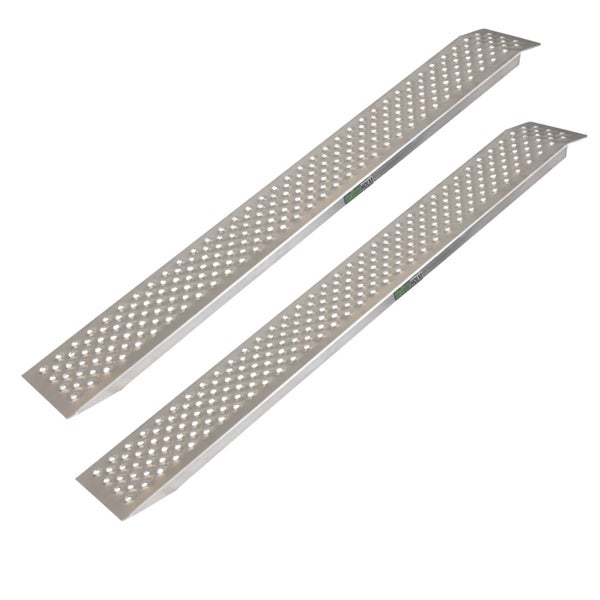 Die leichten und dennoch stabilen Aluminium-Auffahrrampen sind 150 cm lang und überzeugen durch ihre clevere, starre Bauweise. Mit einer Breite von 21,5 cm eignen sie sich optimal für Schubkarren, kleine Transportgeräte oder schmale Fahrzeugreifen. Die rutschhemmende Lauffläche mit gewölbter Lochstruktur sorgt für sicheren Halt – auch bei Nässe. Dank der abgeflachten unteren Auflage lassen sich die Rampen sicher und einfach positionieren. Mit einem Eigengewicht von nur 3,2 kg je Stück sind sie besonders handlich und platzsparend zu transportieren oder zu lagern. Trotz des leichten Designs tragen die Rampen insgesamt eine Last von bis zu 400 kg. Ideal zum Verladen von Fahrrädern und Motorrädern oder für Gartenarbeit, Werkstatt, Baustelle und den täglichen Einsatz zu Hause.