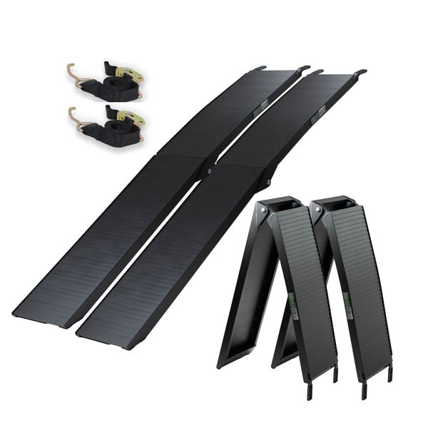 Hohe Traglast: Trotz ihres geringen Eigengewichts von nur 13,5 kg, tragen die Rampen bis zu 680 kg. Die stabilen Materialien und dicken Schweißnähte sorgen für eine hohe Belastbarkeit und eine lange Lebensdauer.