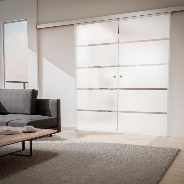 Tür Inova doppelflügelige Schiebetür Komplettset Glas Blockstreifen 1760x2035 Zimmertür Glasschiebetür - Griffknopf+2seitiger Softclose