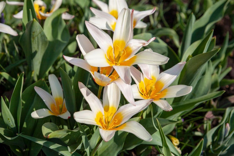 Tulipa tarda, die charmante Stern-Tulpe oder Wildtulpe, gehört zu den botanischen Tulpen und bringt als frühe Frühlingsblüherin leuchtende Akzente in jeden Garten. Ihre sternförmigen Blüten öffnen sich bei Sonnenschein und zeigen ein intensives Dottergelb mit strahlend weißen Spitzen, oft leicht duftend. Der niedrige, kompakte Wuchs von etwa 10 bis 15 cm und das schmale, frischgrüne Laub lassen sie besonders elegant wirken; mit der Zeit bildet diese Zwiebelblume lockere Teppiche und verwildert zuverlässig. Die Blütezeit liegt je nach Witterung im April bis Mai und sorgt im Beetvordergrund, Steingarten und Alpinum für natürliche Leichtigkeit.