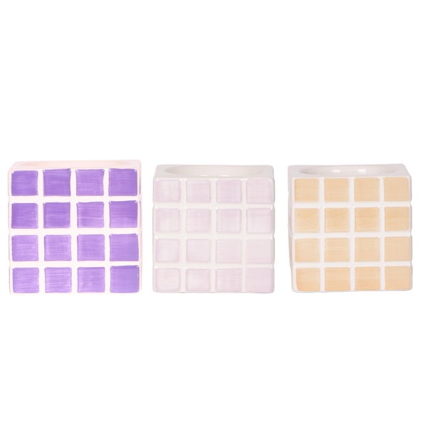 Übertopf-Trio Mosaik-Würfel - Set mit 3 bunten Töpfen - rosa-violett - für 9cm Töpfe