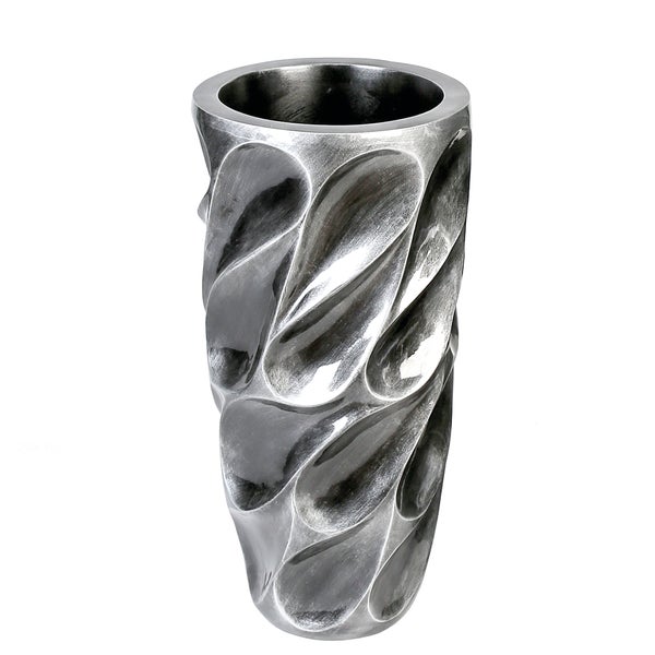 Gönnen Sie sich den Luxus eines „Gartens“ in Ihren eigenen vier Wänden. Pflanzen machen das Zuhause gemütlicher und können zudem das Raumklima verbessern. Das Pflanzgefäß Drop ist aus einem Polyresin-/ Fiberglasgemisch gefertigt und erhält dadurch seine Leichtigkeit und Stabilität. Es wird durch das silberfarbene Tropfen-Design im Antikfinish zum Blickfang in jedem Wohnraum.