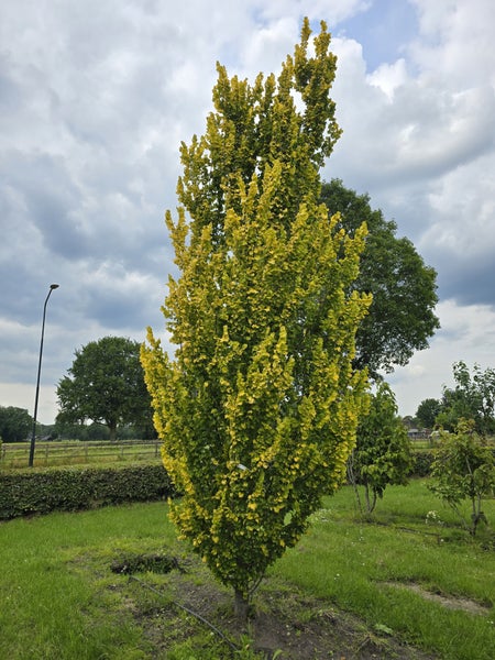 Die Goldulme ist eine auffällige Baumart, die für ihr leuchtend goldenes Laub bekannt ist. Sie wächst straff aufrecht in einer wunderschönen, schlanken Säulenform. Im Austrieb zeigen sich die Blätter strahlenden Goldgelb. Während der Sommermonate verwandelt sich die Laubfarbe dann in ein sattes Gelb Diese Ulme ist robust und anpassungsfähig, ideal für städtische Umgebungen und bietet einen schattenspendenden Platz in Ihrem Garten.