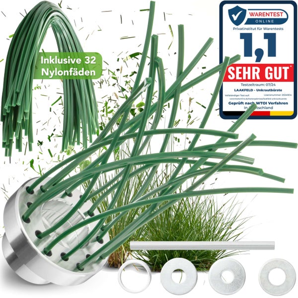 Unkrautbürste für Freischneider & Motorsense Zubehör inkl. 32 PA 66 Nylonfäden - Schonende und effiziente Wildkrautbürste für Motorsense - Langlebige universal Unkraut-Bürste Aluminium