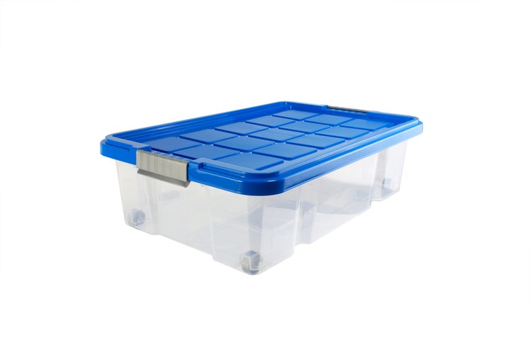 Unterbettbox mit Rollen 60x40x18 cm Box transparent, Deckel azurblau