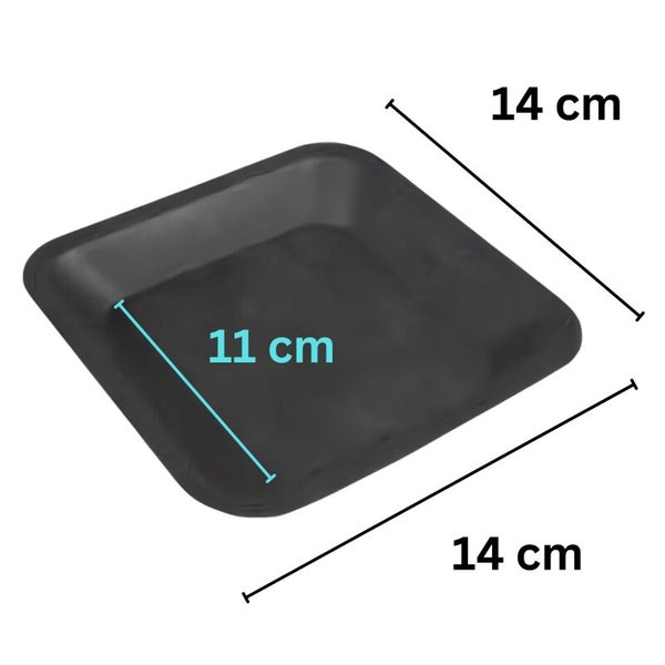 Blumentopf Untersetzer Schwarz 14x14 cm - Eckiger Hartkunststoff Untersetzer für 2L Töpfe, nachhaltig & robust