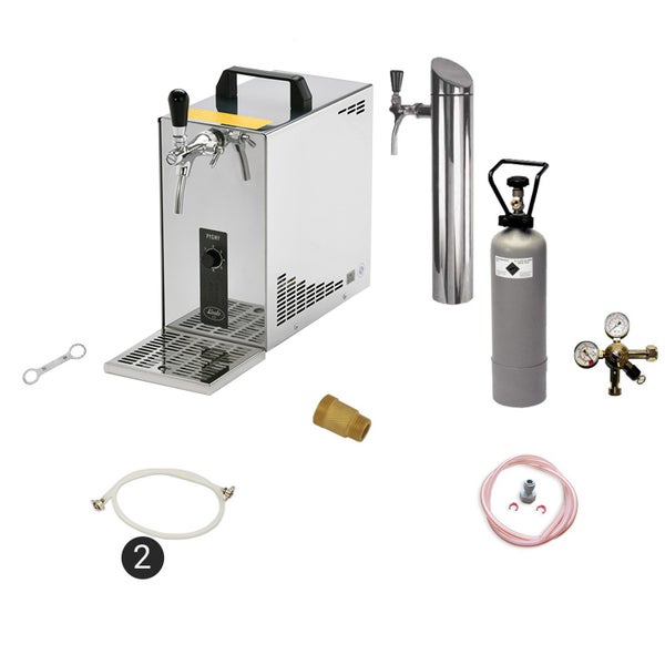 Dieses Untertheken Komplett Set bietet Ihnen eine kompakte und leistungsstarke Lösung für die schnelle und einfache Zubereitung von gekühltem Bier. Mit dem Trockenkühlgerät PYGMY 25 haben Sie ein zuverlässiges und langlebiges Kühlsystem.