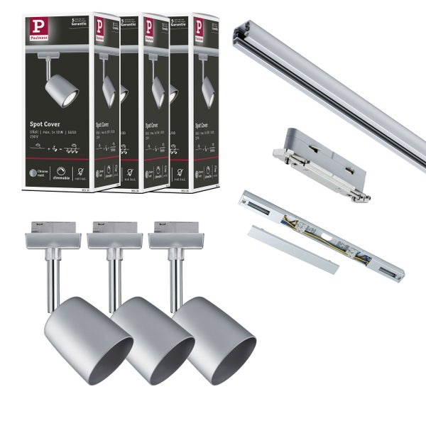 URail Schienenspot Cover Starterset GU10 max. 10W dimmbar 230V Chrom matt, Chrom