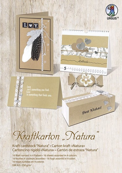 URSUS Basispapiere Kraftkarton-Block Natura, 250 g/m², Format DIN A3, 16 Blatt sortiert