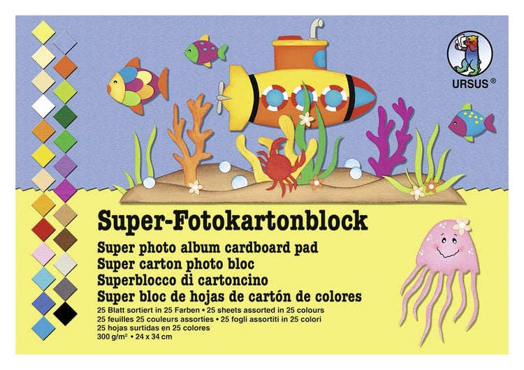 URSUS Basispapiere Super-Fotokartonblock, 300 g/m², Format 24 x 34 cm, 25 Blatt sortiert