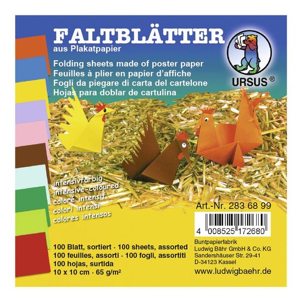URSUS Falten Faltblätter intensiv, Plakatkarton, 65 g/m², 10 x 10 cm, 100 Blatt sortiert