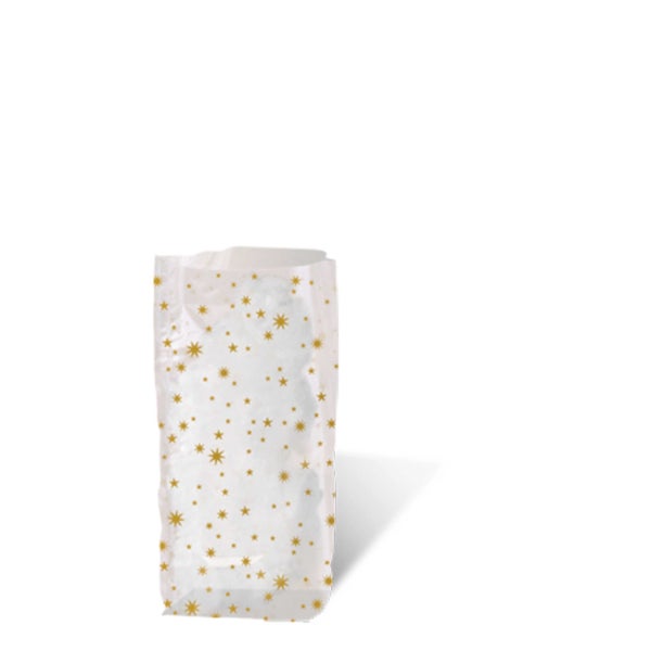 Geschenk-Bodenbeutel Sterne, 10 stück bedruckt: 11,5 x 19 cm, aus lebensmittelechter Folie, transparent, bedruckt