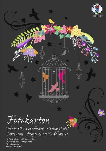 Fotokarton-Block (300 g/m², Format DIN A3 10 Blatt, schwarz) mit hochwertigem Deckblatt (partieller Relief-Hochglanzdruck, veredelt mit kratzunempfindlicher Mattfolie) - URSUS®-Qualität: aus Frischzellulose (daher hohe Farbbrillanz und Lichtbeständigkeit) - Made in Germany