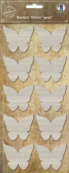 URSUS Vintage Bambus-Sticker Schmetterling, grau, 1 Stickerbogen (12 x 26 cm) mit 10 Stickern