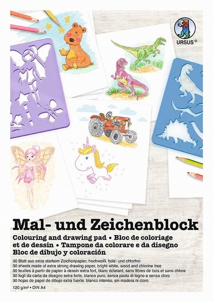 Mal- und Zeichenblock (Zeichenpapier, 120 g/m², Format DIN A4, 30 Blatt, hochweiß) - URSUS®-Qualität: extra starkes Zeichenpapier (Frischzellulose), holz und chlorfrei - Made in Germany