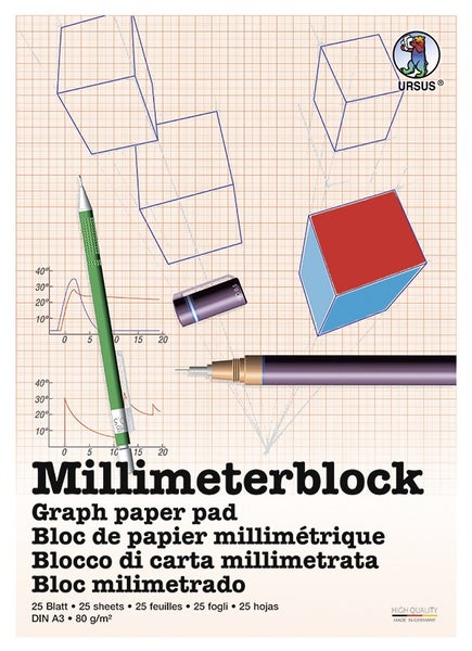URSUS Zeichen und Künstlerbedarf Millimeterblock Format DIN A3, 25 Blatt weißes Schreibpapier 80 g/m²