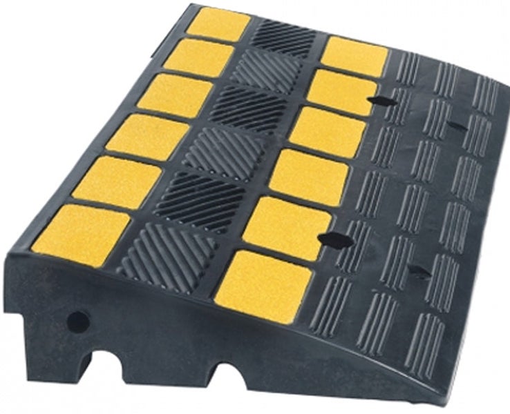 UvV Bordsteinrampe, Anfahrrampe Hartgummi schwarz gelb reflektierend schwerlast bis 40t belastbar, Borsteinhöhe 150 mm, 60 cm breit