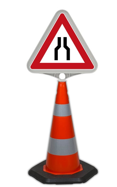 UvV ECOSIGN Leitkegel 70 cm + Verkehrszeichen / Schild Gesamthöhe ca. 1 m / Verengte Fahrbahn VZ 120