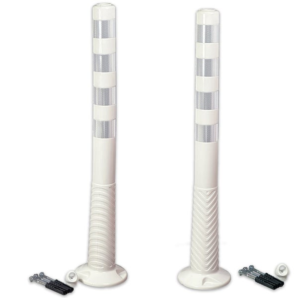 UvV flexible Absperrpfosten Poller weiß + weiß reflektierende Folie, selbstaufrichtend inkl. Befestigung 100cm (2 Stück)