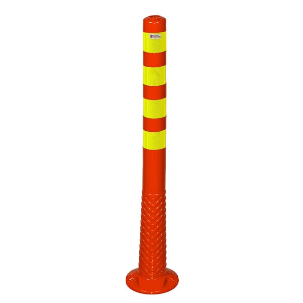 UvV Absperrpfosten Poller 100 cm flexibel orange Folie flour gelb - Flexibler – selbstaufrichtender Sperrpfosten aus TPU (Polyurethan)